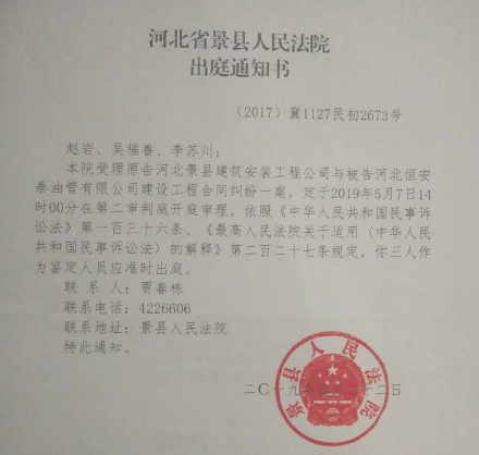 隨著法官一聲“請(qǐng)鑒定人入庭”的指令,我中心司法鑒定人趙巖、吳福善、孫寶慧三位同志出現(xiàn)在景縣人民法院第二審判庭庭審現(xiàn)場,就該院審理的“景縣建筑安裝工程公司訴河北恒安泰油管有限公司建筑工程施工合同糾紛一案”出庭接受質(zhì)詢。我中心接到該院出庭通知后,通知該案鑒定人員預(yù)先熟悉案情,提前作好出庭準(zhǔn)備,我中心積極與該院聯(lián)系,再次確定出庭地點(diǎn)、人數(shù)、出庭費(fèi)用等相關(guān)事宜,并于2019年5月7日14時(shí)00分準(zhǔn)時(shí)出庭,庭審中我中心鑒定人員本著對(duì)雙方當(dāng)事人合法權(quán)益高度負(fù)責(zé)的精神,有理有據(jù)的回答了法官及雙方當(dāng)事人的法庭提問,順利完成本次出庭任務(wù)。司法鑒定人的出庭制度和出庭常態(tài)化,有力的鞭策了每位司法鑒定人對(duì)鑒定質(zhì)量和服務(wù)水平的提高,對(duì)我中心正規(guī)化管理打下堅(jiān)實(shí)基礎(chǔ)。