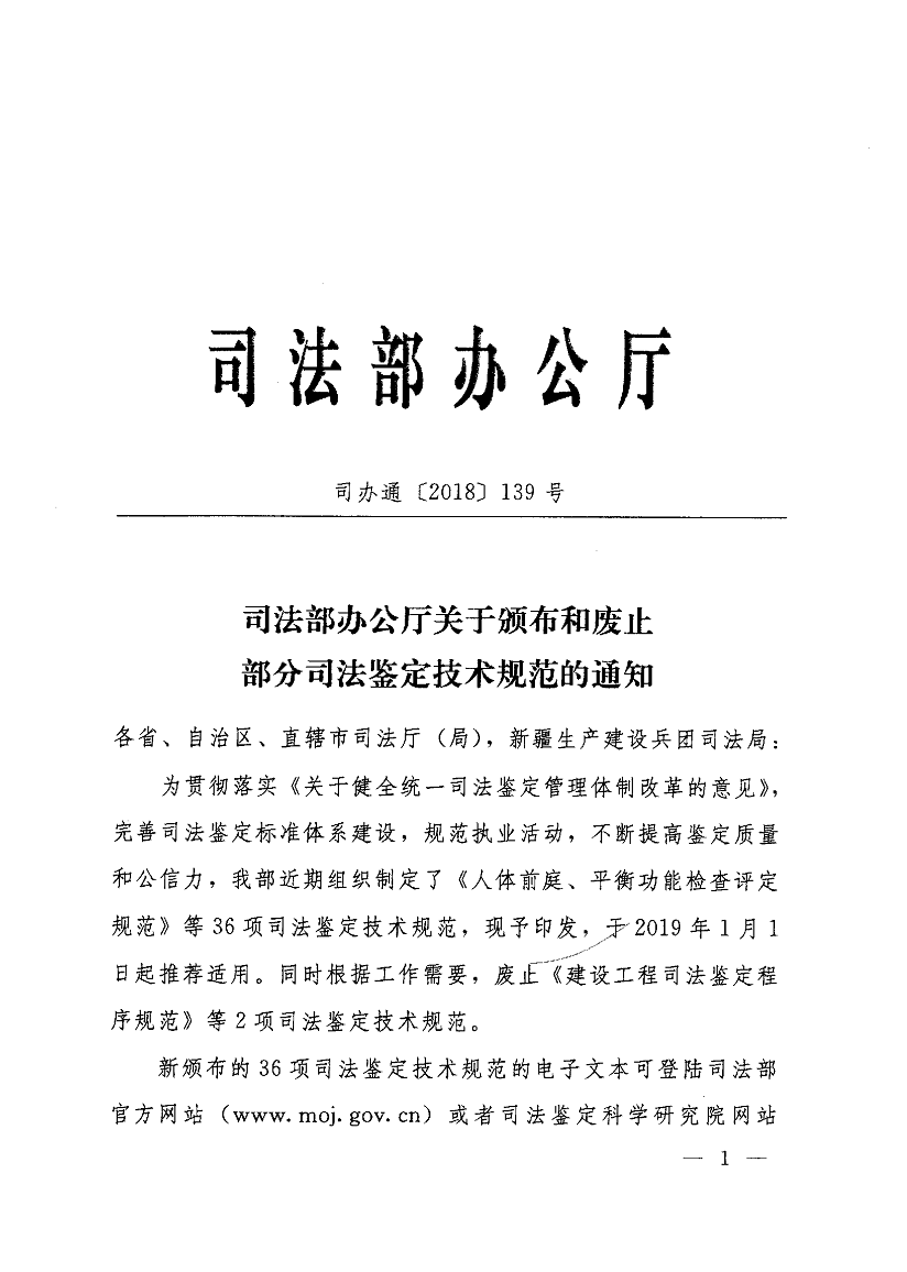 司法部辦公廳關(guān)于頒布和廢止部分司法鑒定技術(shù)規(guī)范的通知